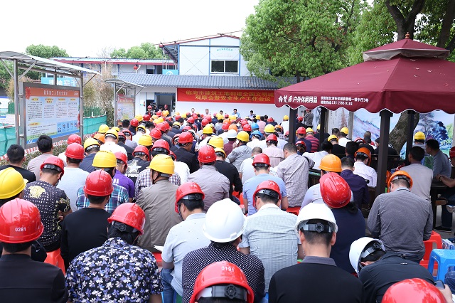临海市第七建筑工程有限公司总经理王盛作为施工单位代表做经验发言,他说,临海市花街村民安置房工程是一个惠民工程,旧村改造的排头兵,也是旧村改造的形象工程,是城市建设的风貌改变的桥头堡。承建旧村改造工程既是光荣,也是压力。我们的目标是创浙江省安全文明标化工程、创“括苍杯”优质工程,同时安全工作做到零事故.