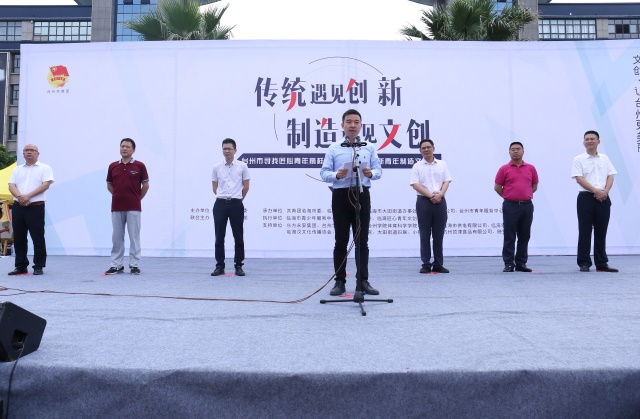 启动仪式中,谢伟书记致欢迎词;陈兆富副部长为临海市匠心青年文创俱乐部揭幕;文创俱乐部第一批会员张秀娟剪纸、青飨、小玩子联合果等20位代表入驻临海市匠心青年文创俱乐部;牟暄荣局长为临海匠心青年文创梦工厂授牌,胡天临主任接牌;毛祖超书记和金坚强副行长为我们开启“青农贷”,贷款额度高达100万元;临海剪纸第二十二代传承人杨雨潇宣读“新青年、新文创”倡议书;杨贤巍副书记为全市文创青年寄语。